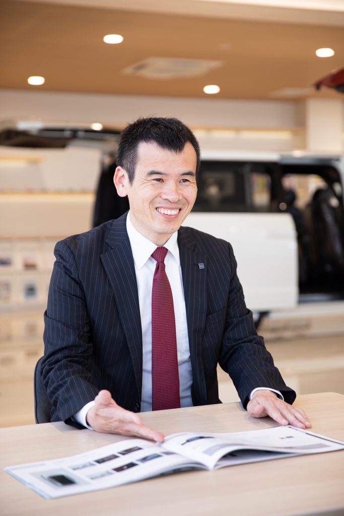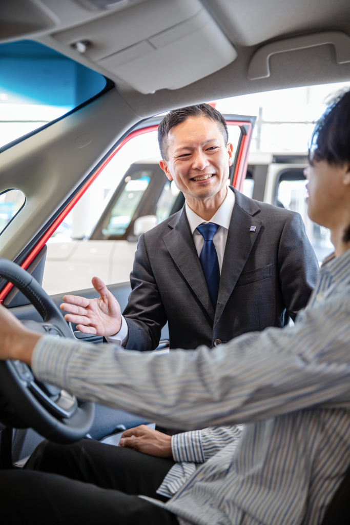 営業はゲームのようなもので、車を売るという目標を達成できた時にやりがいを感じます。車を売るのは簡単なことではありませんが、難しいからこそ達成感を得ることができるし、評価もしていただけるので楽しくてとても好きです。他業種での経験もとても活きており、楽しみながら仕事をしていたら自然と結果もついてきます。結果として私は入社して3年で主任を任せていただき、とてもありがたく思っています。接客では、「今、お客さまは何を考えていて何を求めているのか」をしっかりと考えて接客することを心がけ、そのお客さま一人ひとりに合わせて接客スタイルを変えるようにしています。忙しく大変なこともありますが、スタッフみんな仲が良くお互いに助け合うことができるこの会社が大好きです。