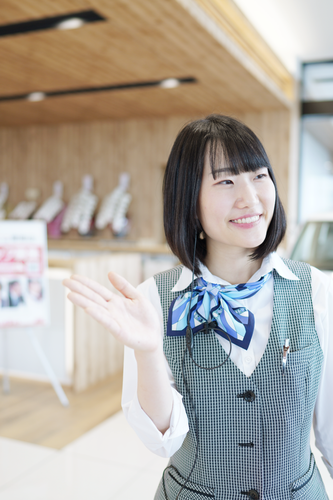 現在の仕事は、車や自動車保険の提案、点検の案内など、接客がメインです。入社してすぐにマナーや言葉遣いなどの研修があったので、1〜2ヶ月後には現場でお客様とコミュニケーションが取れるくらいに成長することができました。